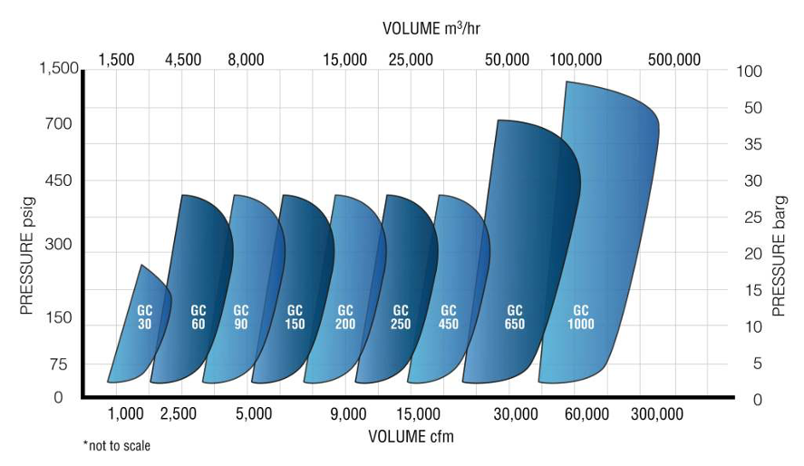 Caudales: desde 150 SCFM a 88,000 SCFM